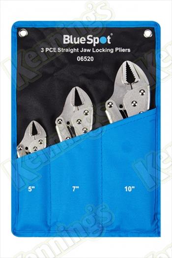The BlueSpot 3 PCE Straight Jaw Locking Pliers (5", 7", 10") are manufactured from nickel-plated steel for increased durability.