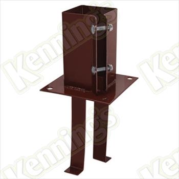Designed for use when soil conditions are unsuitable for drive-in spikes. Extremely hard-wearing and resistant to corrosion due to the dual coated heavy duty mild steel, which is then zinc plated, with a moisture resistant brown powder coating over the top for ultimate durability.Protects the fence post from water, fungal and insect damage.Mechanically tightens around the fence post using the bolts for a secure fit and easy removal of the fence post at a later date if required.The shoe should be set into a 450mm cube of concrete so that the base plate sits on the surface. The fence post should only be inserted once the concrete has been cured.Colour may vary depending on the supplier at the time, if you require a specific colour please call to check current stock.