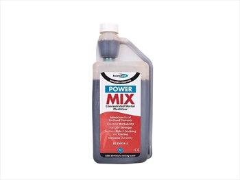A premium quality, concentrated mortar plasticiser designed to improve the workability of bricklaying and plastering mortars, as well as increasing their resistance to freeze-thaw cycles. Use of Power Mix also removes the need for lime and reduces the risk of cracking and crazing.Easy to use controlled dosage, simply add the required amount of liquid to the gauging water. This product is 20 times stronger than standard mortar plasticisers.If you would like any more information on this product, please call the number at the top of this page and speak to our super efficient sales team now!Browse our full range of sealants and adhesives online for other competitive deals on silicone, caulk, grab adhesives and more.